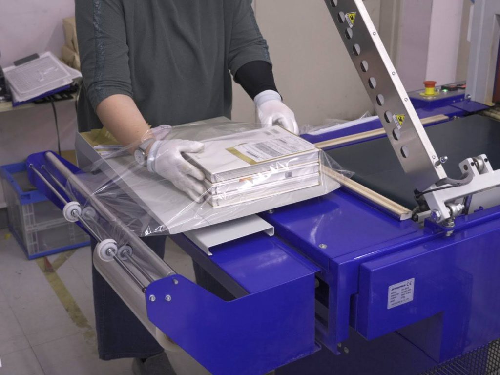 もともとは野菜の梱包に使われていた機械ですが、バリューブックスでは本を包むための大事な相棒です。