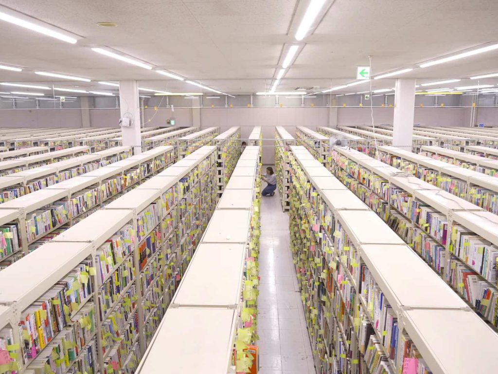 バリューブックスの倉庫では、25冊ごと、本に付箋を貼り管理しています。