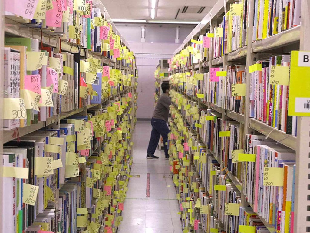 この付箋については「出品編」の記事で詳しくご紹介しましたが、出品作業の段階で貼られる付箋が、本の置き場所を示す目印になっているのです。