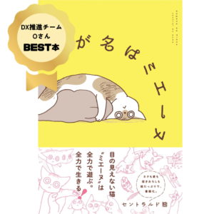 目が見えない子猫ミエーヌが主人公のコミックエッセイ。文学的で独特な言い回しがとにかくクセになります。あふれだす好奇心のままに突き進み、傍若無人に周囲を振り回す姿は、まさに小さな暴君!日常の嵐の中に命のたくましさと愛おしさが詰まり、気づけば少し泣ける一冊です。