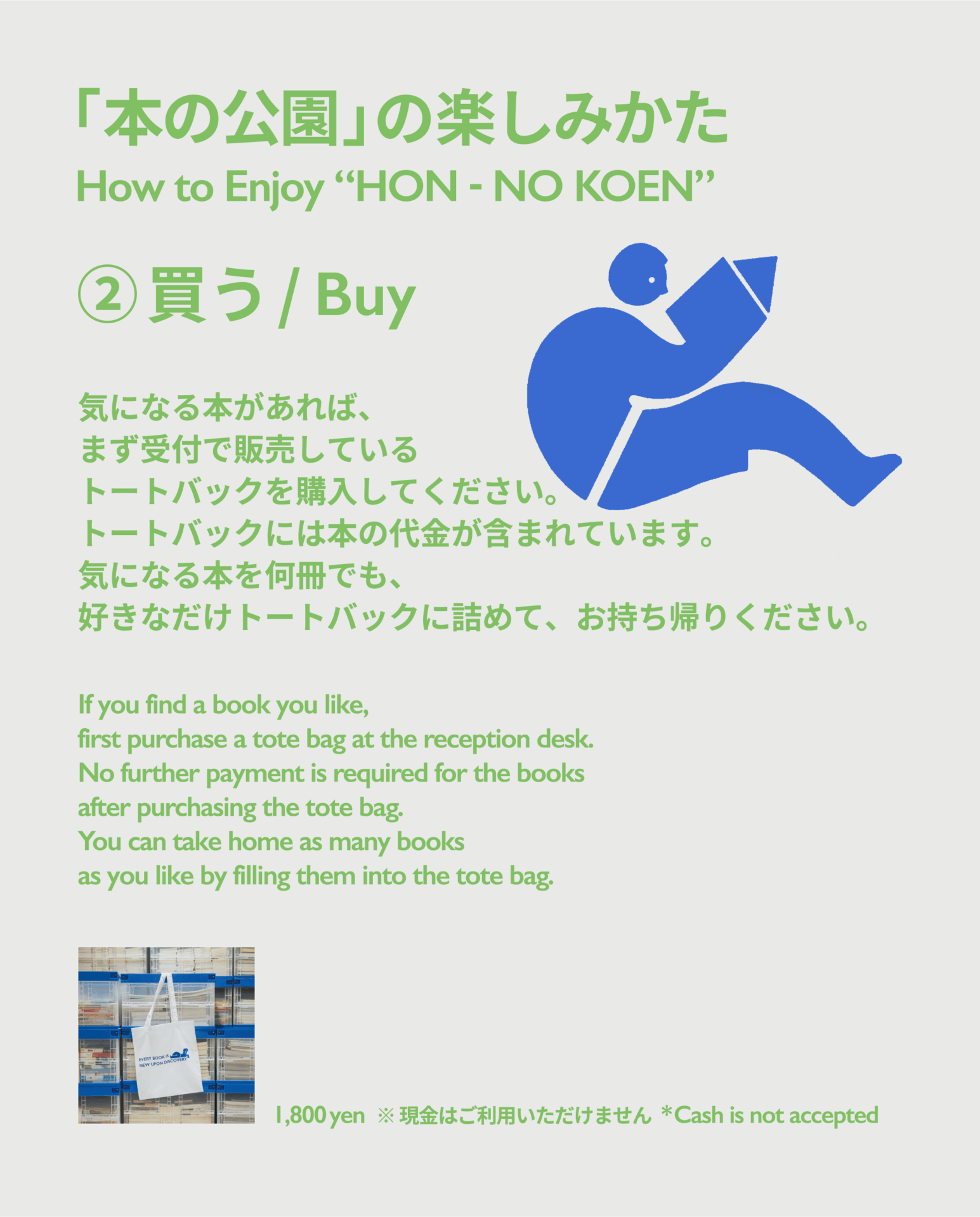 実際に手に取ってじっくり読書をしたり、気に入った本は受付で販売しているトートバッグに入れて持ち帰ることもできます。