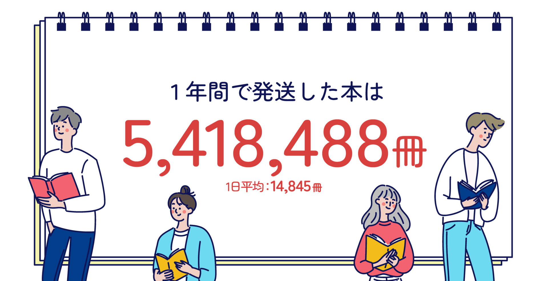インターネットを通じて、1年間で販売した本は5,418,488冊。平均すると、1日あたり14,845冊もの本を倉庫から発送しています。そのほかにも、実店舗「本と茶 NABO」や、移動型書店「BOOK BUS」、卸先のパートナー店舗を通して、次の読者へ届けています。