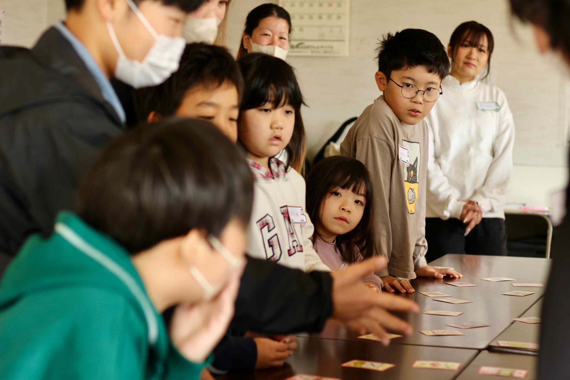 英語でじゃんけんをしたり、カルタで遊んだり。