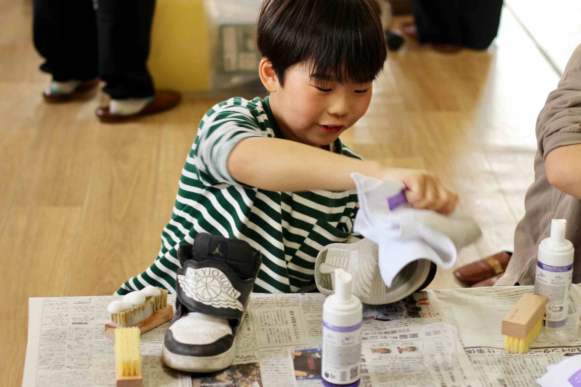 それぞれが持参したスニーカーを、自分の手で丁寧に磨いていきます。