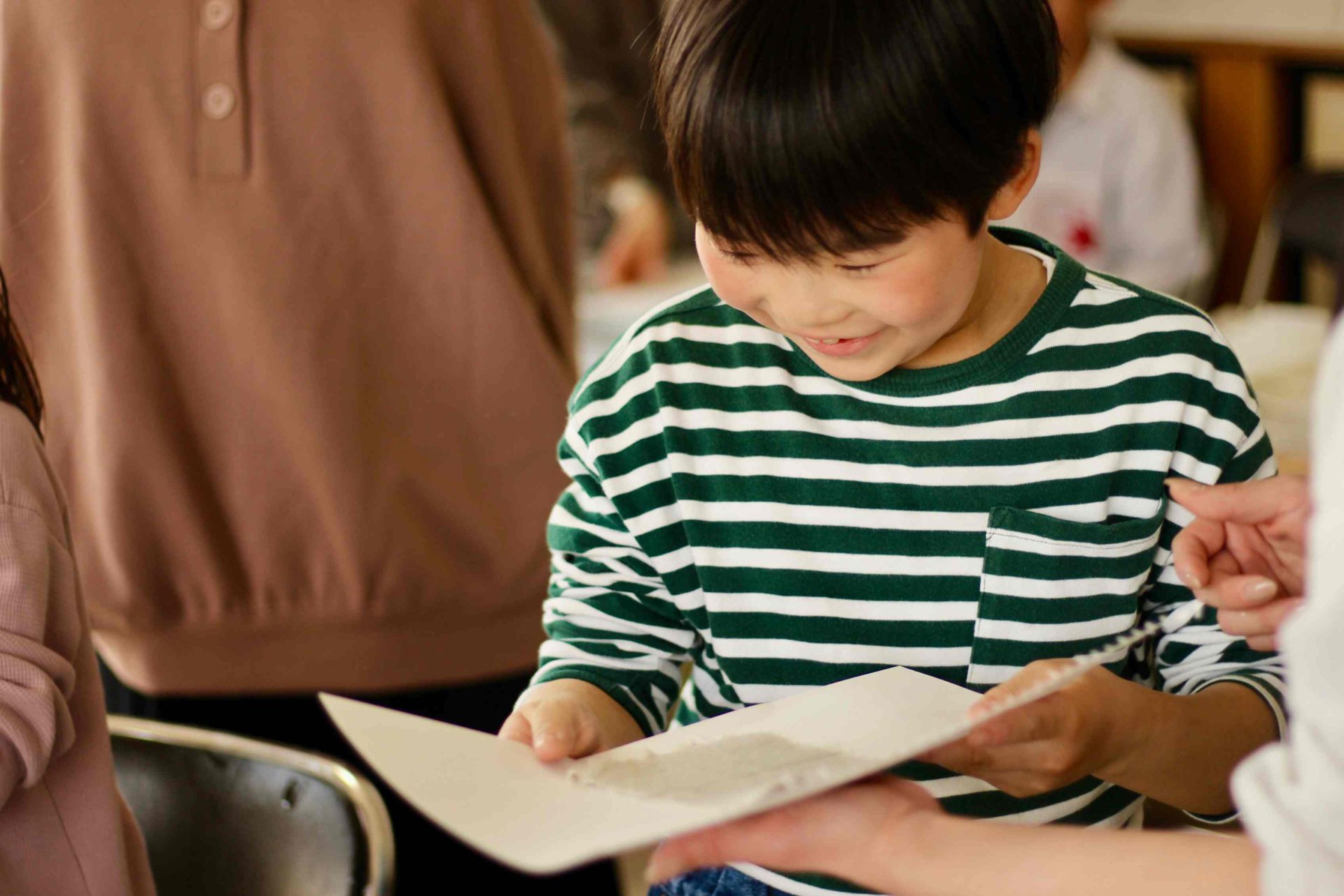 シンプルな工程の中で、紙が形になっていく様子を、こどもたちは目を輝かせながら楽しんでいました。