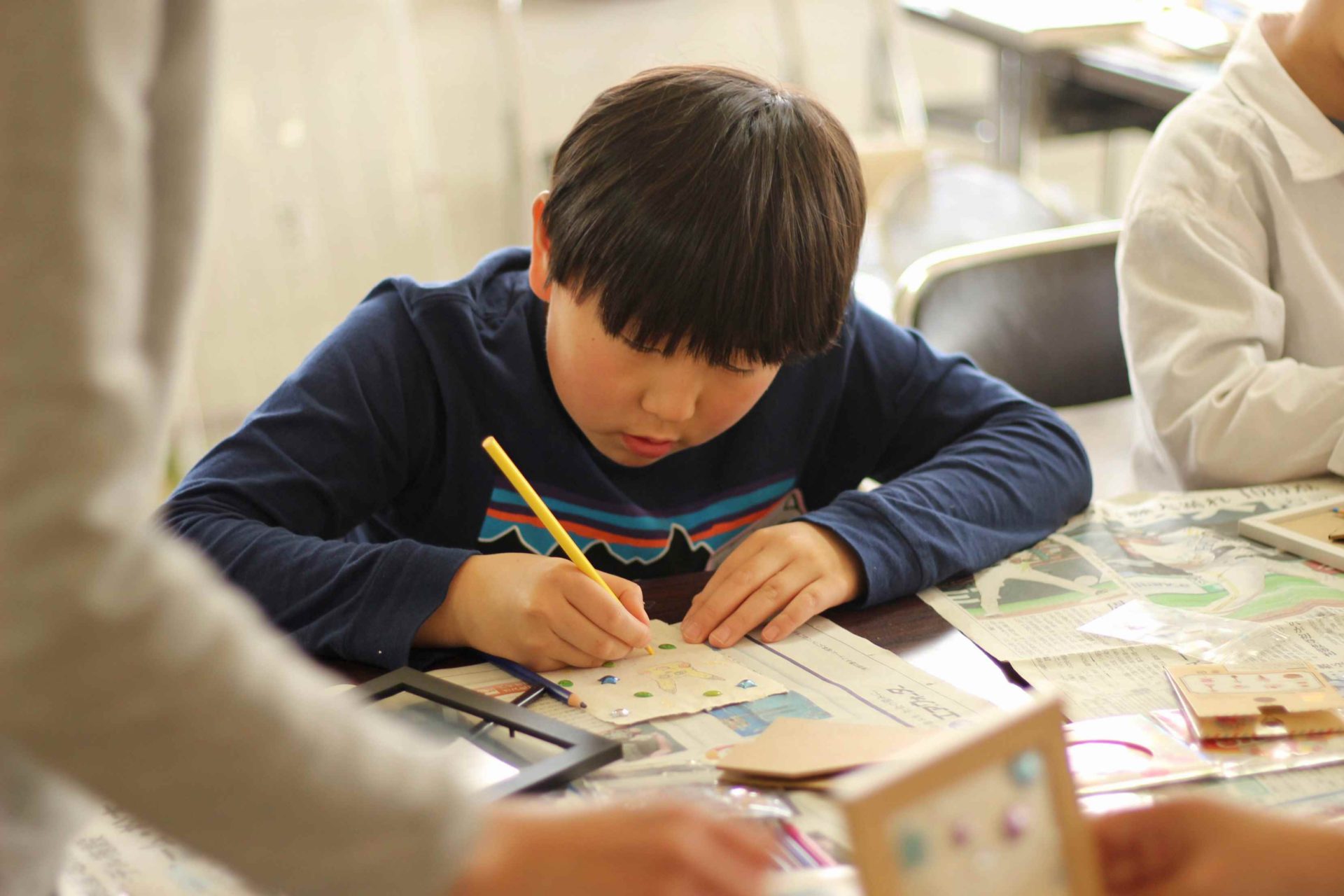 本だった名残を感じるその紙に、絵を描いたりシールを貼ったりして、世界に一つだけの作品が完成しました。