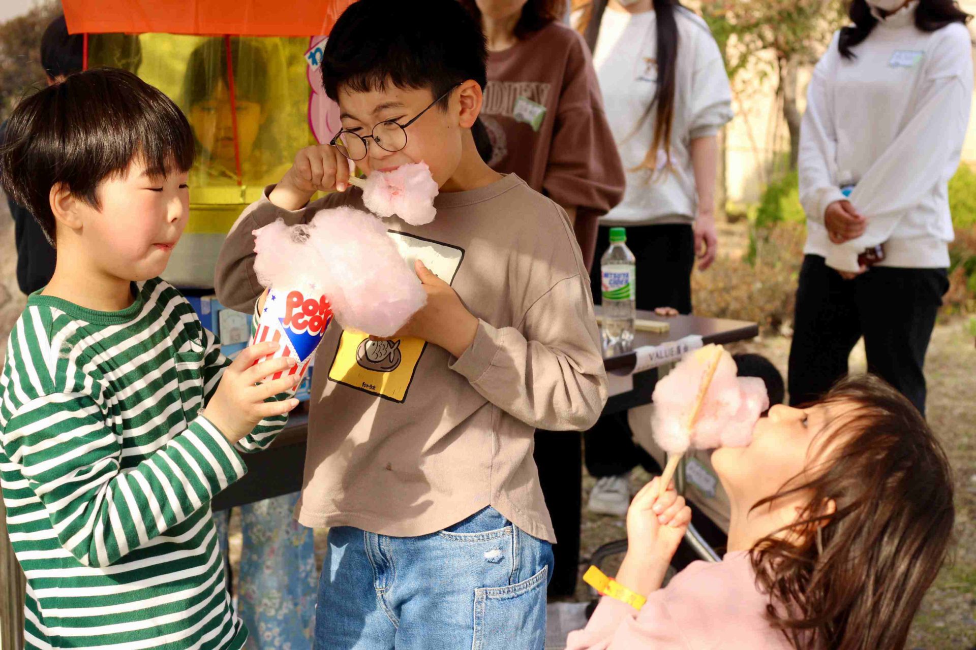 その後の帰るまでの時間は、ミサンガやわりばし鉄砲をつくったり、ポップコーンや綿菓子を楽しんだりと、思い思いに過ごします。